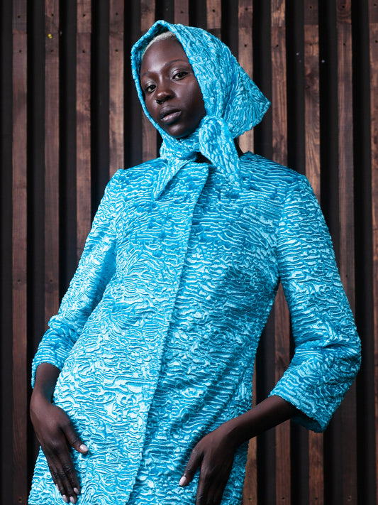 Faux fur women's kerchief - Astrakhan Aquamarine