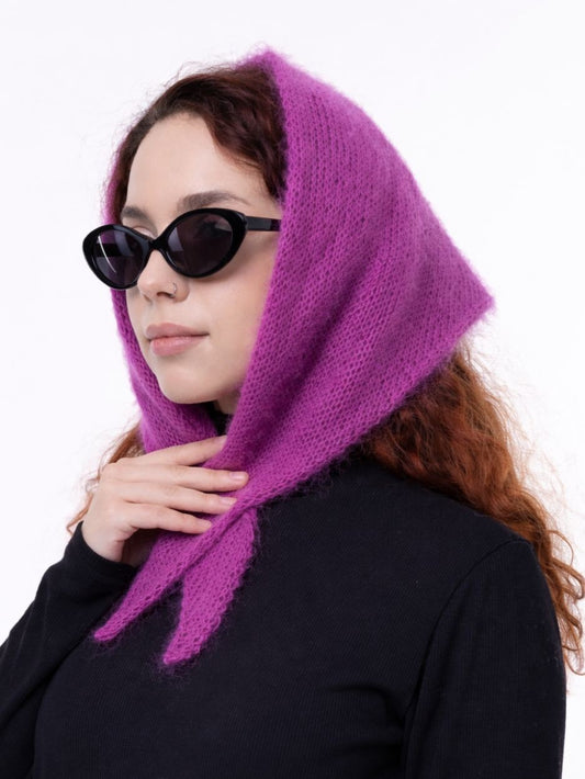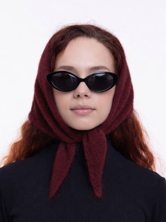 Hand-Knitted Head Scarf - Mohair Bordeaux