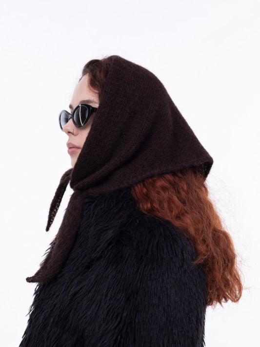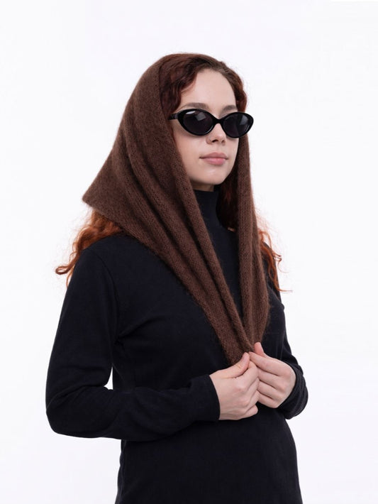 Hand-Knitted Head Scarf - Mohair Chestnut Brown