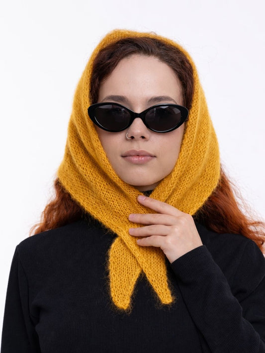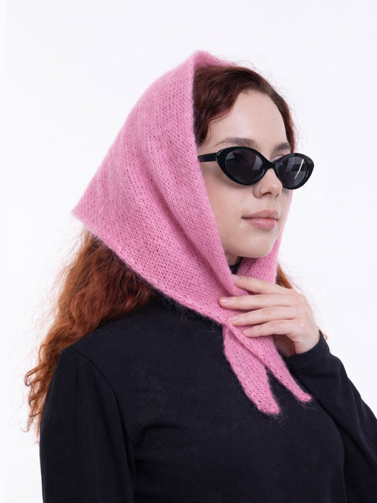 Hand-Knitted Head Scarf - Mohair Macadamia
