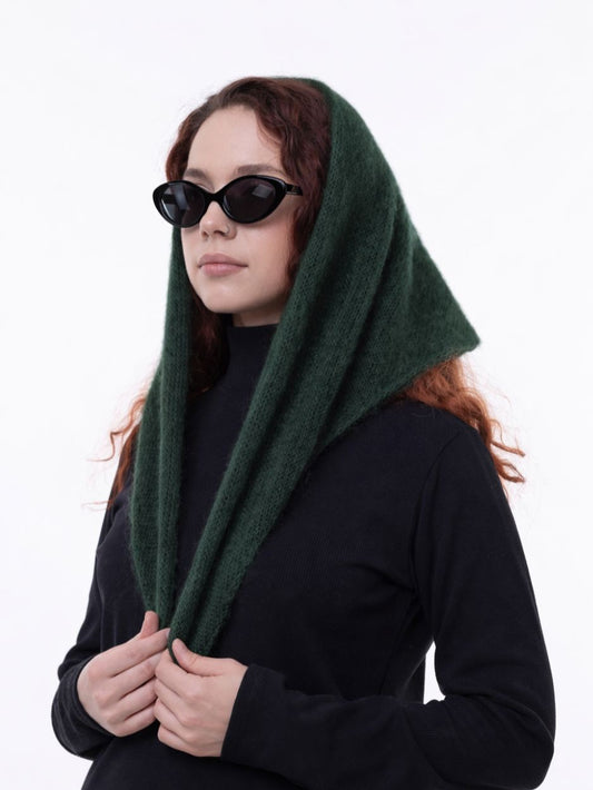 Hand-Knitted Head Scarf - Mohair Moss Green