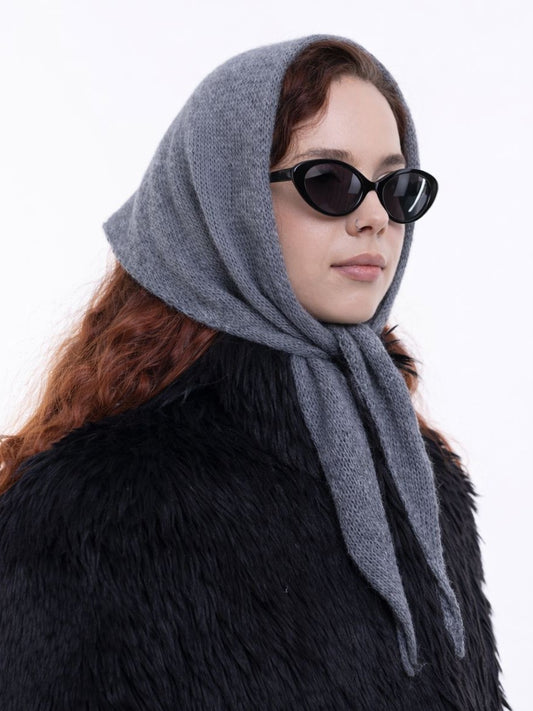 Hand-Knitted Head Scarf - Mohair Slate Grey