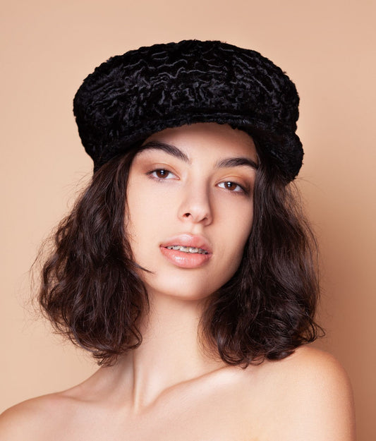Faux fur women's baker boy hat - Astrakhan Onyx